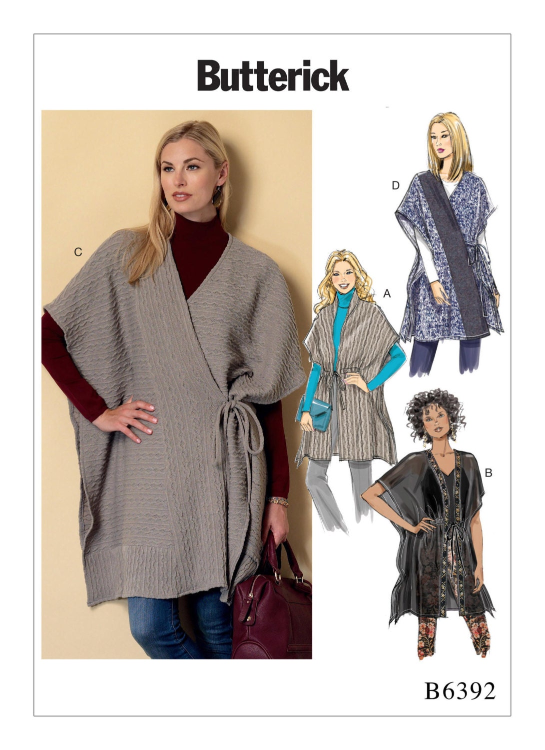 B6176 Misses Open Front Kimonos Butterick Patterns